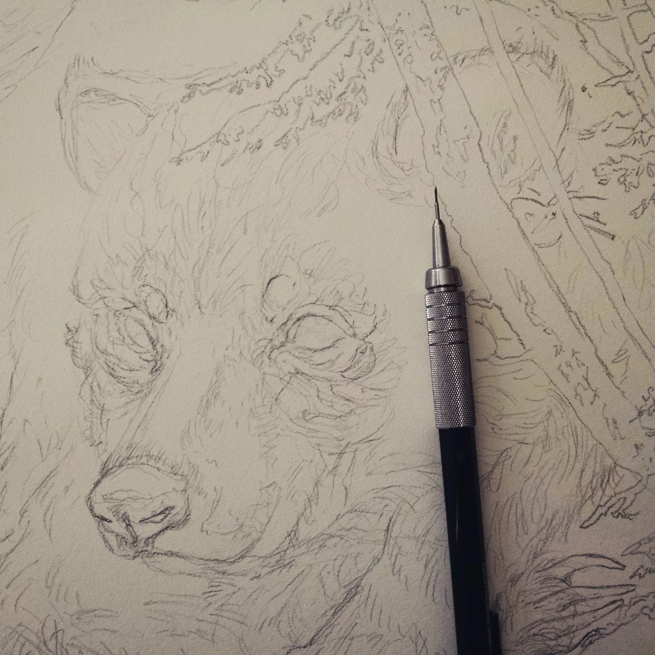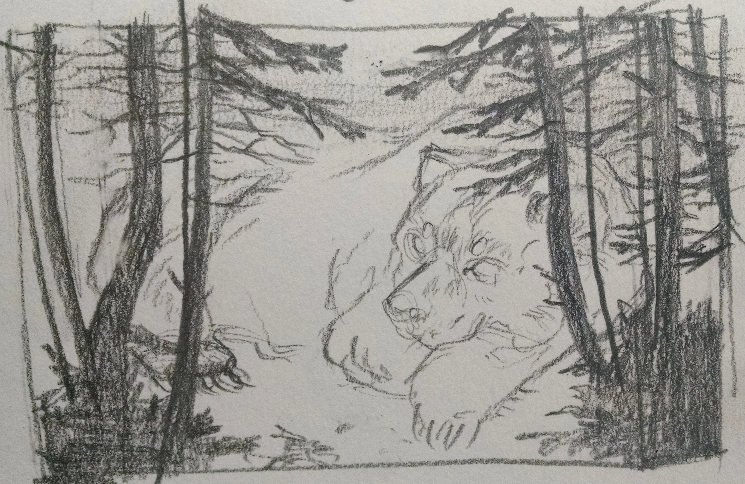 Traversing the Pine Haunt began like most of my work with an itsy bitsy sketch.