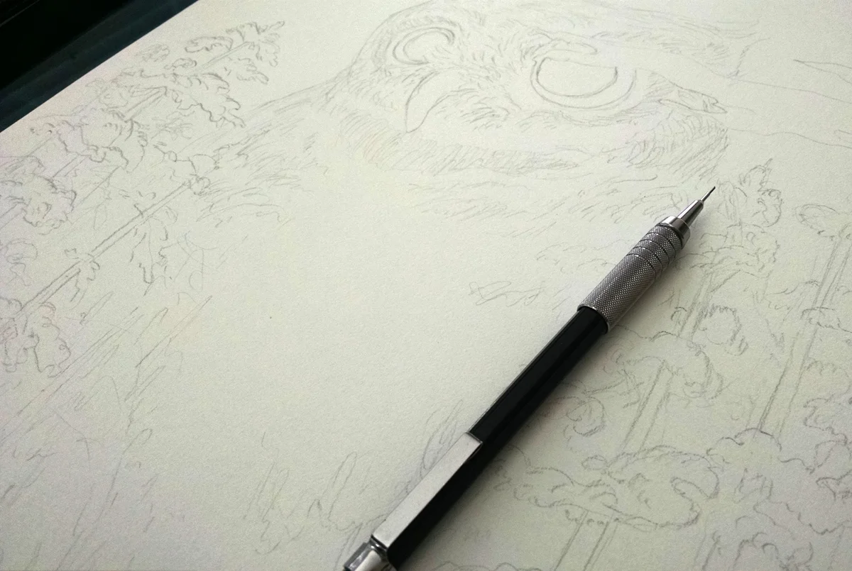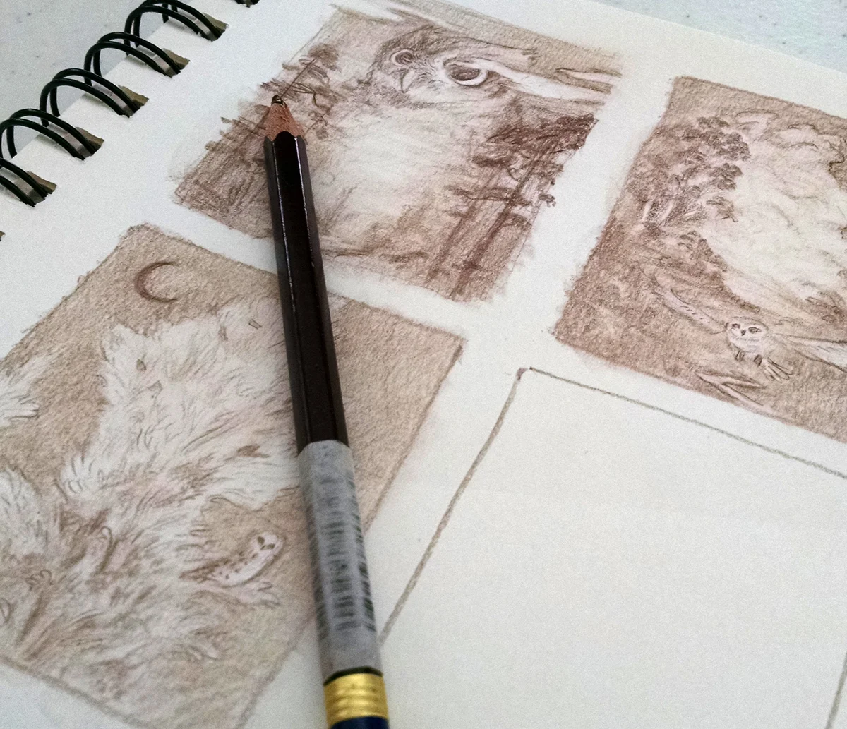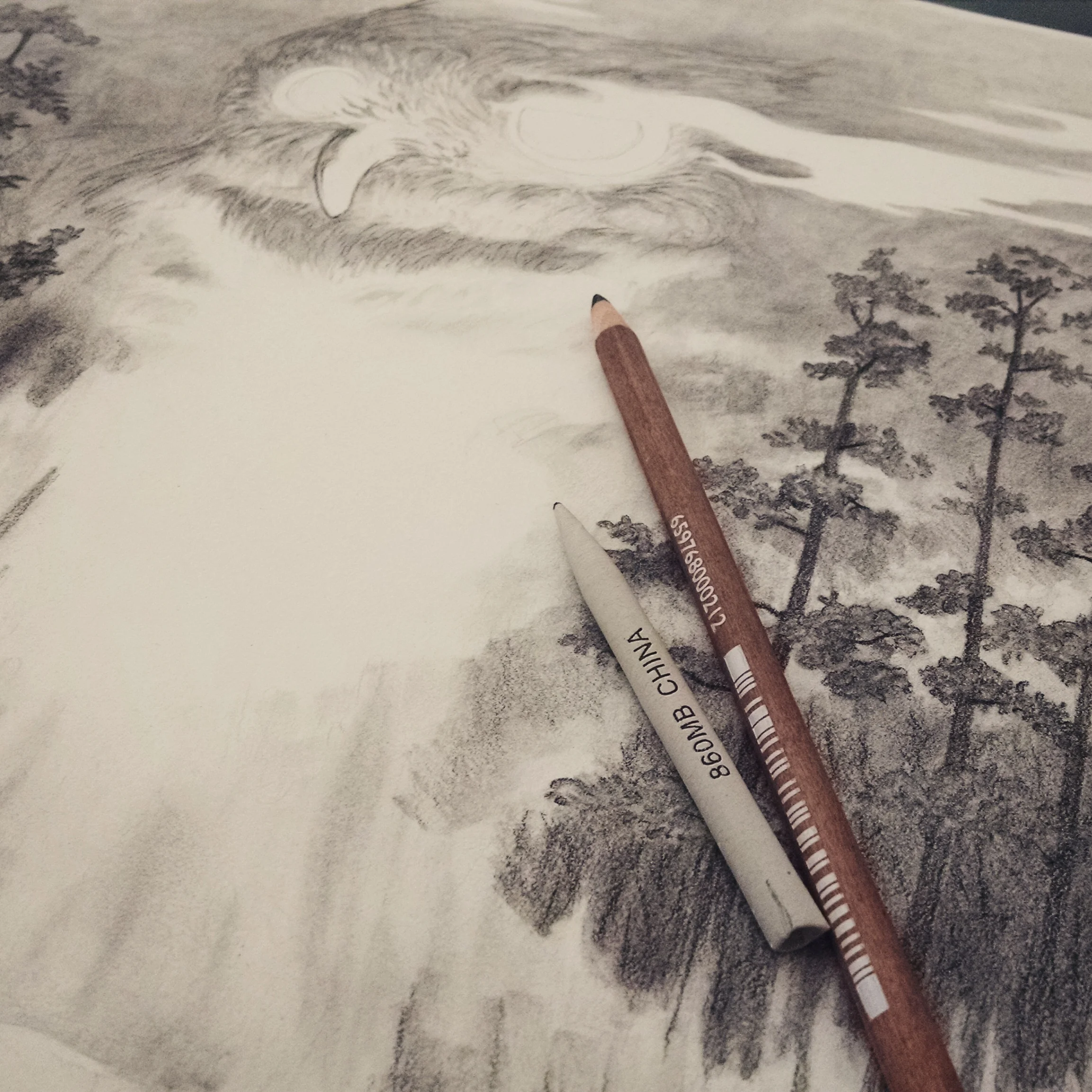 That thumbnail was then transferred to bristol so I could continue to refine the details in pencil before adding any charcoal.