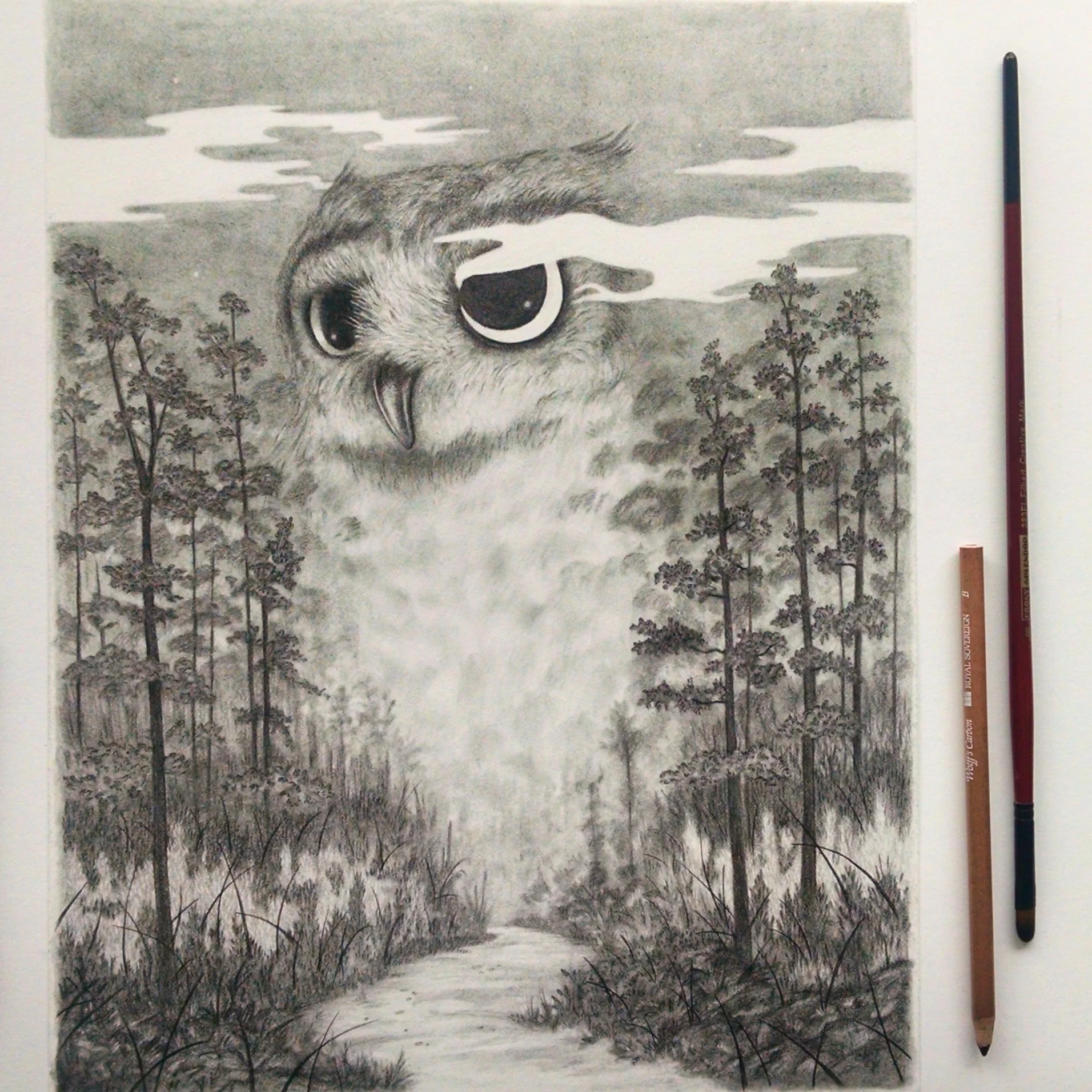 My favorite element of this piece is the way the eyes and the misty clouds merge. I love when environment and character become one.