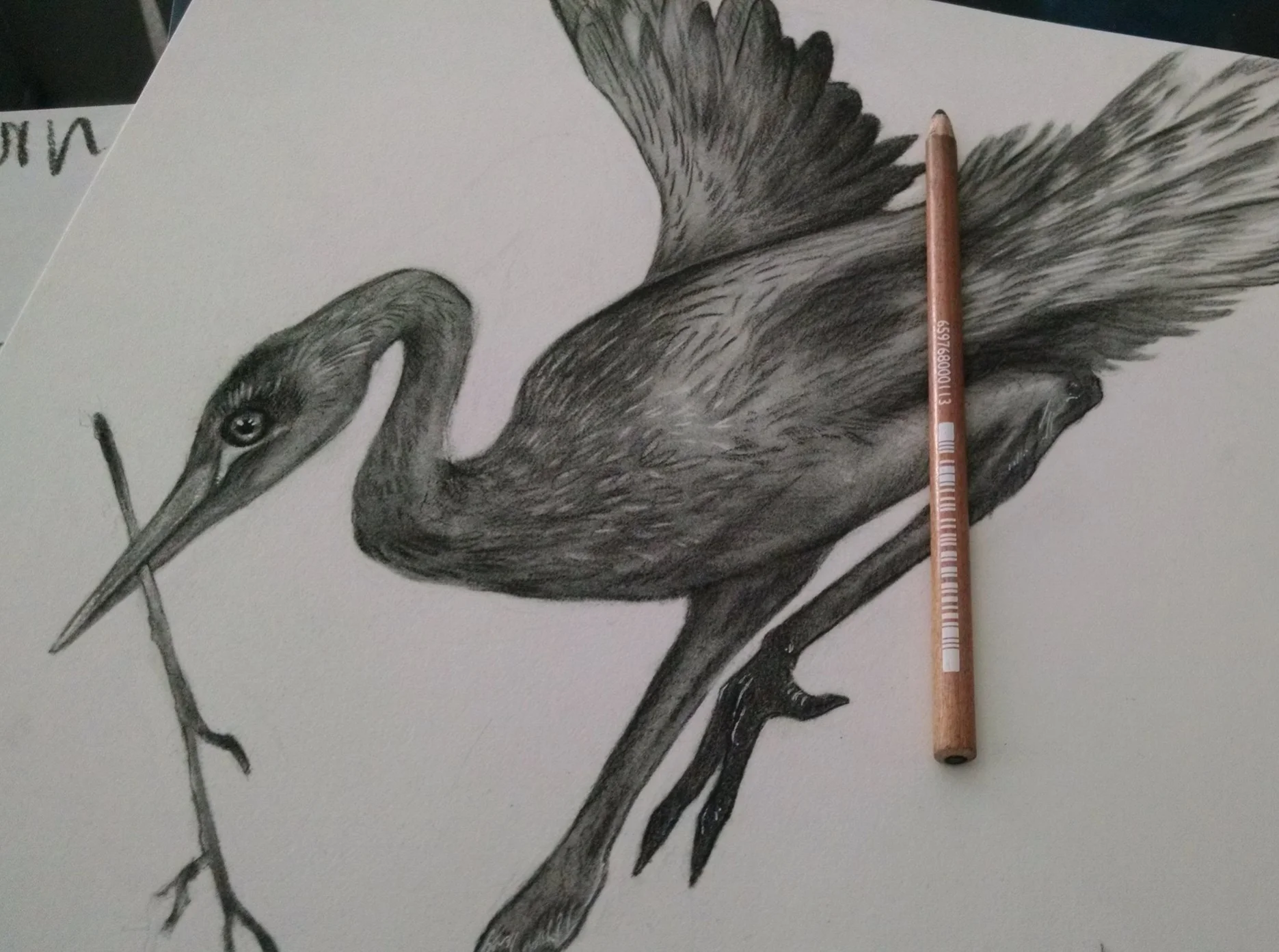 Dusk Dance came around pretty quickly once I put pencil to paper. This piece depicts the sandhill crane, which makes a migratory journey every year. Traveling those distances is still hard for me to comprehend and leave me in awe.